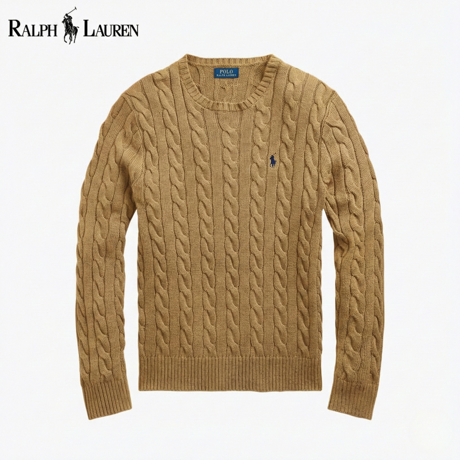 A cotton jumper combining a textured cable-knit pattern with a refined embroidered chest emblem.